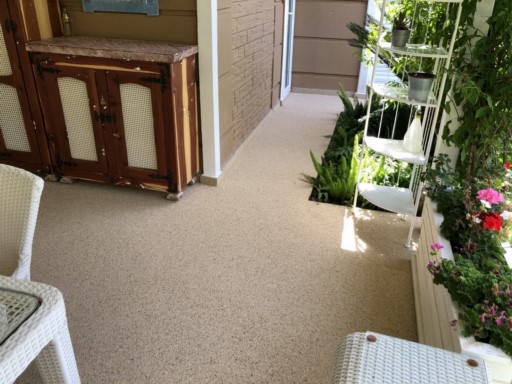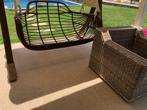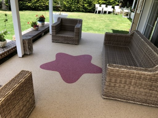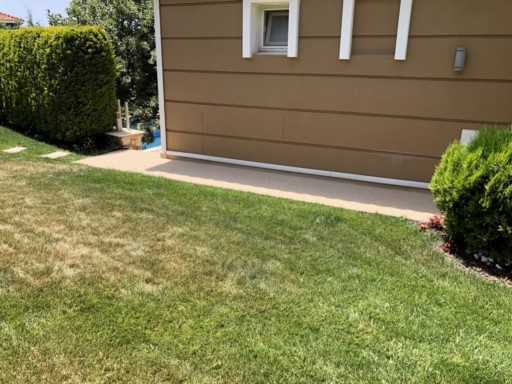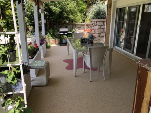 Villa projemiz kapsamında villa çevresi, veranda kısımları zemin kaplama olarak taş halı zemin kaplama uygulaması yapıldı.