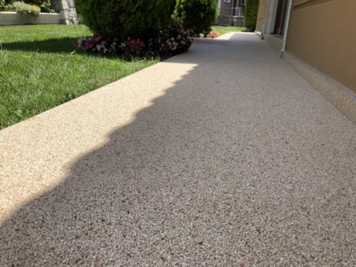 Bu kapsamda taş halı renk olarak özel olarak ürettiğimiz bej renk agrega taşları kullandık.