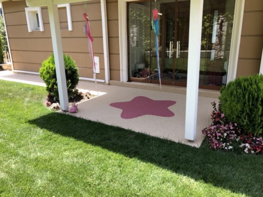 Stone carpet ürünü olarakta geçen taş halı uygulamasında özel olarak bazı bölgelere motifler yerleştirdik.